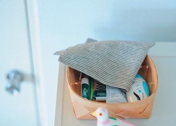夫の細かい物がテーブルの上に散らからないように、専用かごを用意。