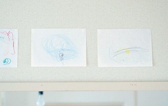 子どもの作品はもちろん好き。ちゃんと飾ればほのぼの豊かな気持ちになれます。まわりに余白があれば、ごちゃつく印象になりません。