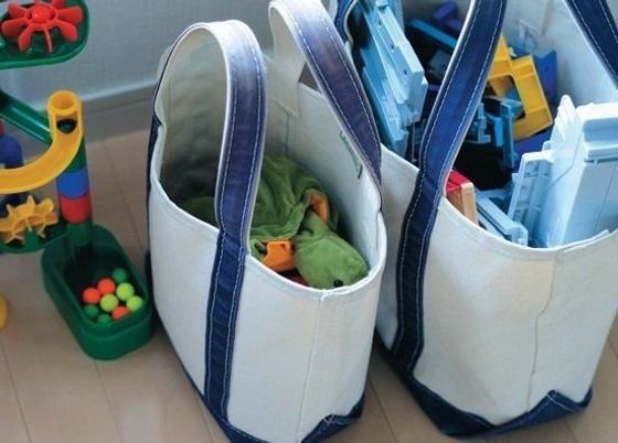 派手な色のおもちゃはトートに入れてスッキリ。持ち運びもラク!