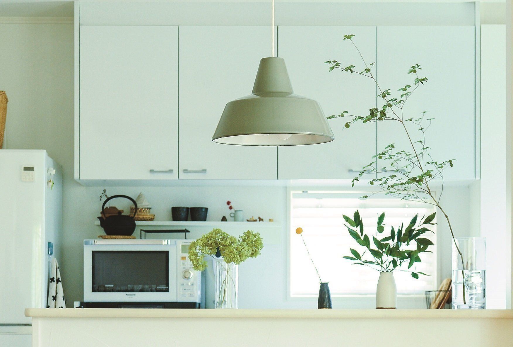 今回ご紹介したkaoriさん宅は、存在感をおさえた白&シンプルな作りつけ収納によって、植物や雑貨が映えるキッチンになっていますし、emiさん宅では、お気に入りのアイテムが並ぶウォールラックや壁の一面だけに採用した水色の壁紙が、ダイニング側から見たときの素敵なアクセントになっています。