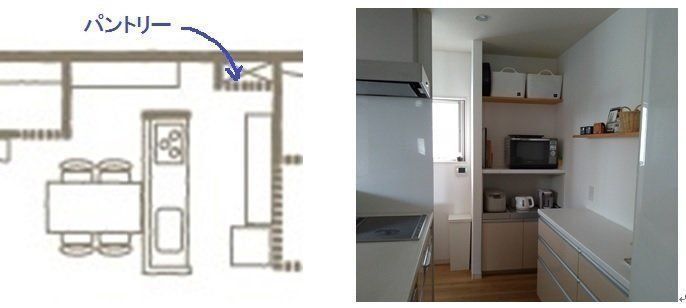 ここで改めてKさん宅の間取り図を見ると、キッチンには、ダイニング側から死角になる場所にパントリーがあり、2階には広いウォークインクローゼットが設けてあります。