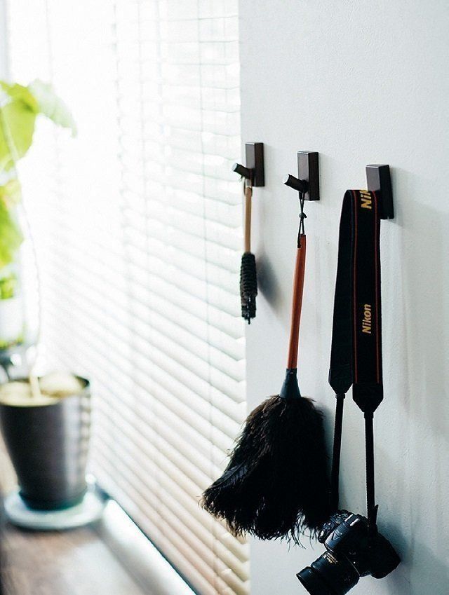 ブラインド用のブラシやはたきは、すぐ手に取れる位置にスタンバイ。「好きな場所に取りつけられ、耐久性も抜群。見た目もおしゃれと三拍子そろった優れ物です」