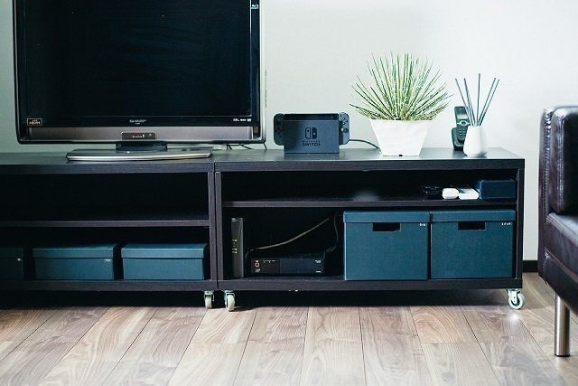 家族でだんらんしたり来客を通すリビングは、〝とにかく見た目スッキリ〞がマイルール。高さのあるボックスにはDVDやゲーム類を、浅めのボックスにはお絵描きグッズを収納。