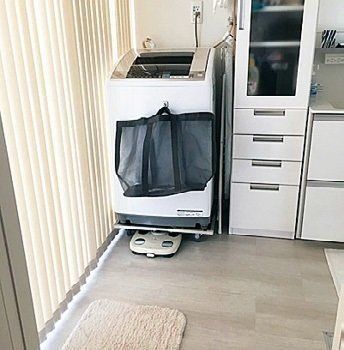 以前使っていた床置きタイプの洗濯かごは、場所を取るのでずっと邪魔でした。ランドリーバッグなら、フックに掛けられて省スペース!(aki_aki_homeさん)