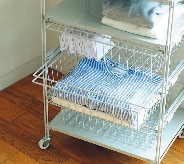 中身がひと目でわかるワイヤーバスケットは、衣類やタオルの収納にもってこい。ラクに移動ができるので場所を選ばず、さまざまな用途に使えます。