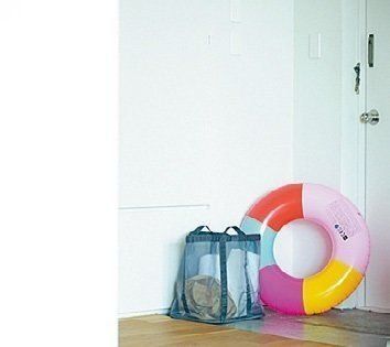 ナイロンメッシュで通気性に優れ、水にぬれても安心。ビーチバッグとして活用できるほか、大きめサイズだから、かさばりがちな外遊びのおもちゃもすっぽり収納できます。