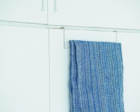 シンク下の扉などに掛けて使う、ワイド幅のフック。キッチンクロスやハンドタオルを掛けるほか、扉の内側に取りつけて、ゴミ袋を掛けても◎。