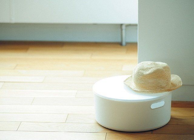 ありそうでなかった円形のポリエチレンケース。別売りのふたを組み合わせれば、積み重ねて使えます。直径約36㎝と大きめなので、形くずれが気になる麦わら帽子もすっぽり収納可能。