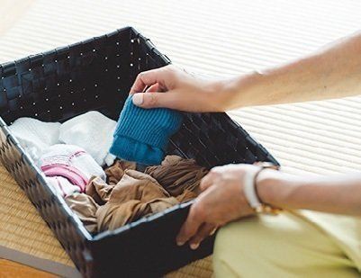 しわが気にならないものは、わざわざたたまなくてもいいじゃない?くるっと丸めてカゴに入れれば、しまうのも選ぶのも簡単。