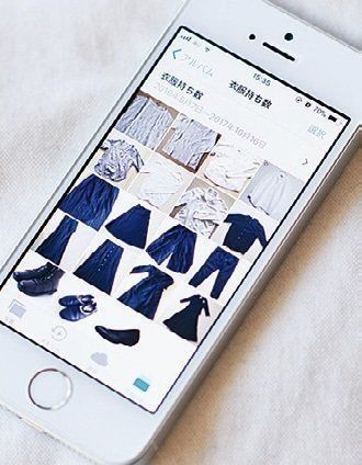 手持ちの服をスマホで写真に撮ると冷静に見直しができます。「こんなの持ってた?という物は処分しても問題なし。似たような服のダブり買いも防げて、適量をキープできます」(尾崎さん/ 『サンキュ!』18年3月号より)