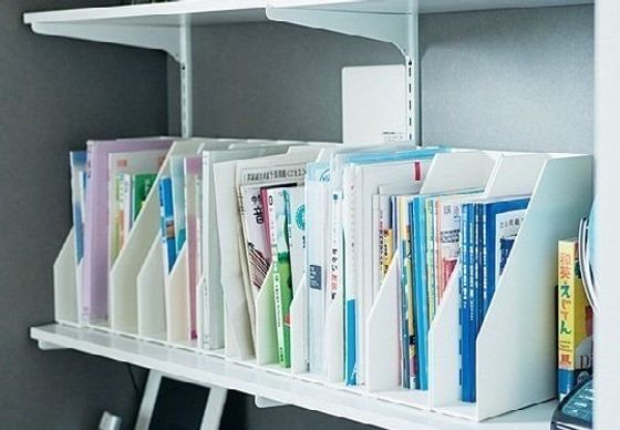 一般的な書類ボックスは、中身をいったん持ち上げて取り出す必要が。これなら子どもがラクで、戻すのも面倒になりませんね。