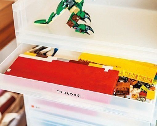 「ブロックを片づけるとき、作りかけの『作品』をどうするか悩むもの。無理やり撤収するのはやめて、途中の物専用の引き出しをつくったら、自分から大切そうにしまうようになりました」