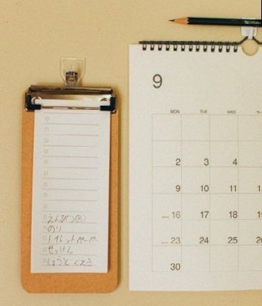 カレンダーの横にチェックリストと鉛筆をフックに掛けて収納。文具や日用品のストックが切れたら、その都度書き出してもらいます。カレンダーと一緒に毎日確認するから、買い忘れもありません。
