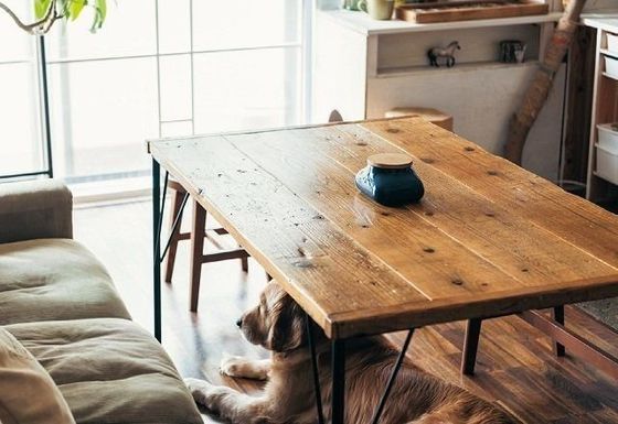 食事をしたり、テレビを見たり、娘さんが宿題をするのにも使っているというダイニングテーブルは、飾らず、スッキリをキープ。置きがちなプリント類は、すぐそばに指定席を。