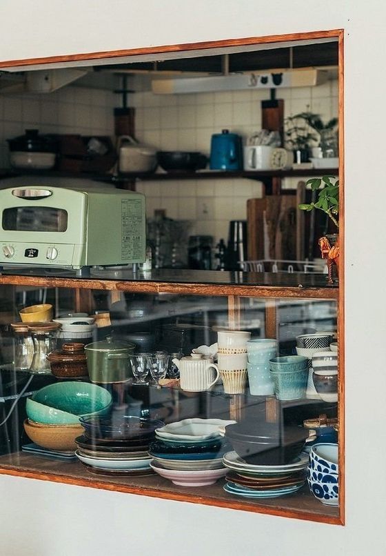 引き出しや中が見えない棚に食器を入れると、持っていることを忘れて、一部しか使わなかったり、たくさんあるのに、ついまた買ってしまったり。ガラス棚ならそんな心配はなし。多いように見えて、使っていないムダな食器はないのです。