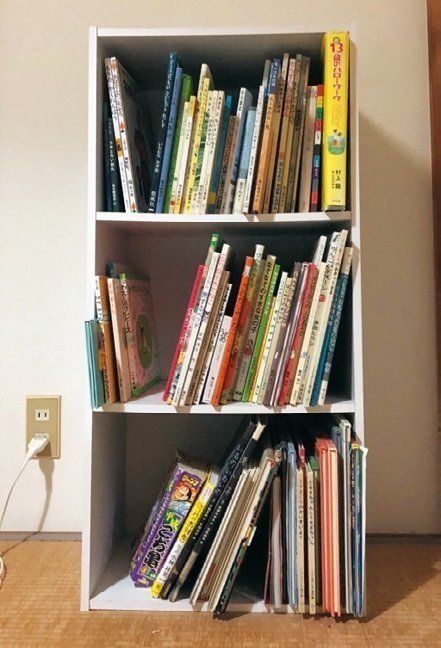 絵本専用のはずが、関係ない本やトリセツがいっぱい……。見やすく取り出しやすくなったので、大好きな絵本を再び手に取るように。