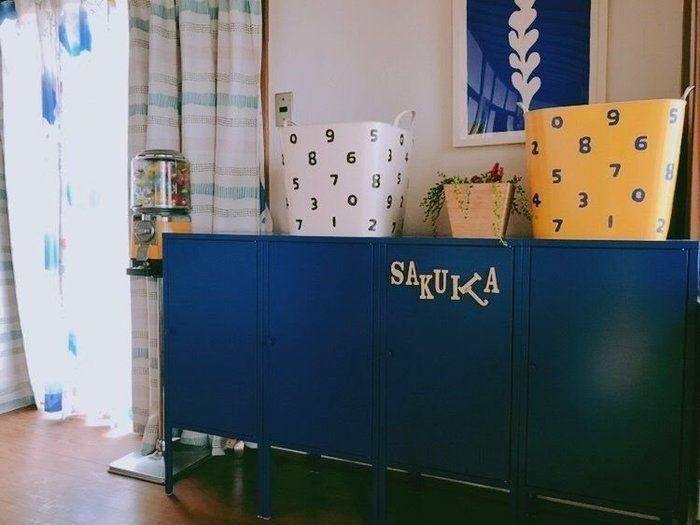 サンキュ!STYLEライター朔花さんのアイディアは、1人1つのロッカー。このロッカーには「あとで使うから」「明日も使うから」と、ついついその辺に置きっぱなしにしてしまうものを収納。家族の共有の場を散らかさない意識や、片づけの自立にも繋がるのだとか。