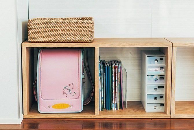 何度言っても床に置きっぱなしだった原因は、ランドセルのしまいにくさでした。学校のロッカー風にしたら、自然と片づけられるようになりました(kao.さん/『サンキュ!』19年4月号)