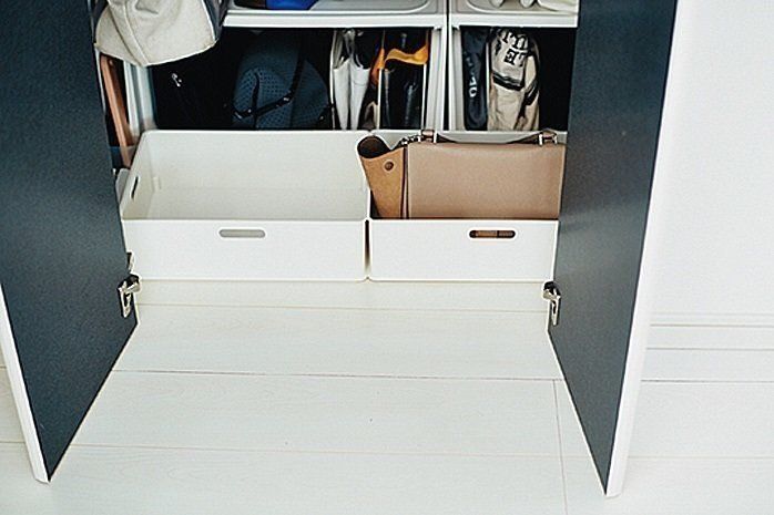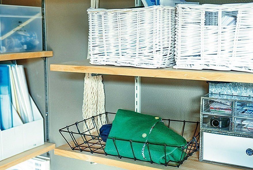 帰宅してすぐ片づけるのが面倒な様子だったので「取りあえず」の置き場所をつくったら、ちゃんとそこへ入れるように(万波和枝さん/『サンキュ!』19年11月号)