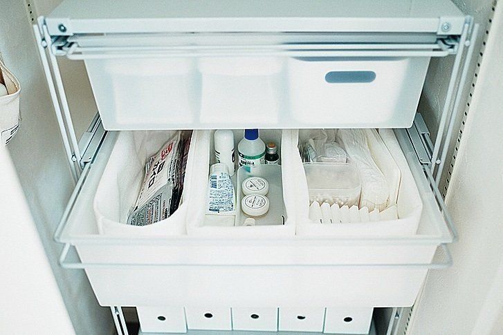 中身が見渡せるから何が入っているかが一目瞭然に。収納の位置は、立ったままでも出し入れしやすい高さにするのがポイントです(瀧本真奈美さん/『サンキュ!』19年11月号)