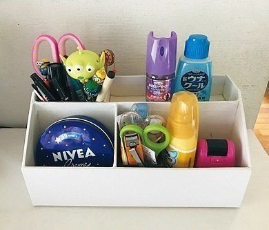 いろんな物がちょい置きされて収拾がつかなかったリビングやダイニング。よく使うペンやハンドクリームをペン立てに入れてリビングの棚にまとめたらスッキリしました。
