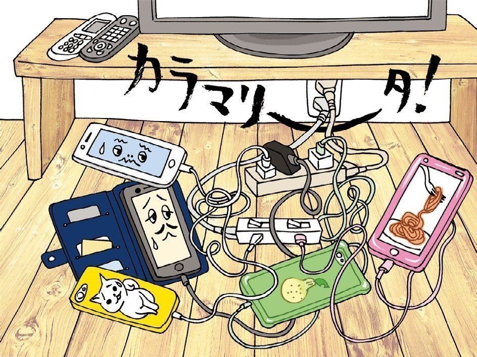家族のスマホ台数が増えただけ、充電器やケーブルもうじゃうじゃ増え……。それらが床のコンセントの近くで渦を巻いています。さらに、渦には綿ぼこりがどんどん吸い寄せられる。もう見ないことにしています。