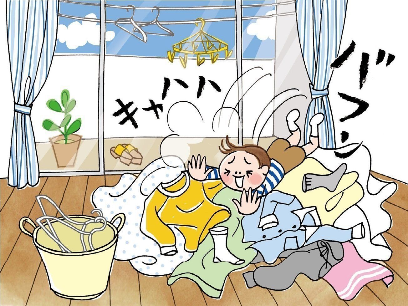 忙しいと、干してた洗濯物を取り込んだところで「あ、夕食の準備しなきゃ!」とか「もう家を出ないと遅刻だ!」ってなりますよね? 洗濯済みなんだから床に置いても無害ですよね? あ、やっぱりなし?(てへっ)。