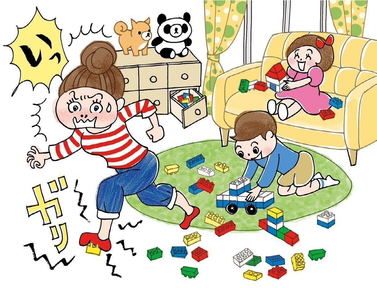 うちの子はいつもおもちゃを床に出しっ放し。「片づけて」と言っても「ちょっとまって~」と言うか、または無視。イラつきながら極小ブロックを踏んだときの激痛といったら……。私のシワが増えるのは、床のおもちゃのせいです。