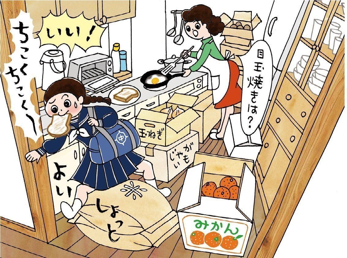 米やじゃがいもや白菜やみかん……。重いし、かさばるしで収納場所なんかないから、床に置くしかない。それでキッチンや廊下の床が埋めつくされ、たいして広くない家がさらに狭くなり。家族や自分がいつかけつまずいてころぶと思います。