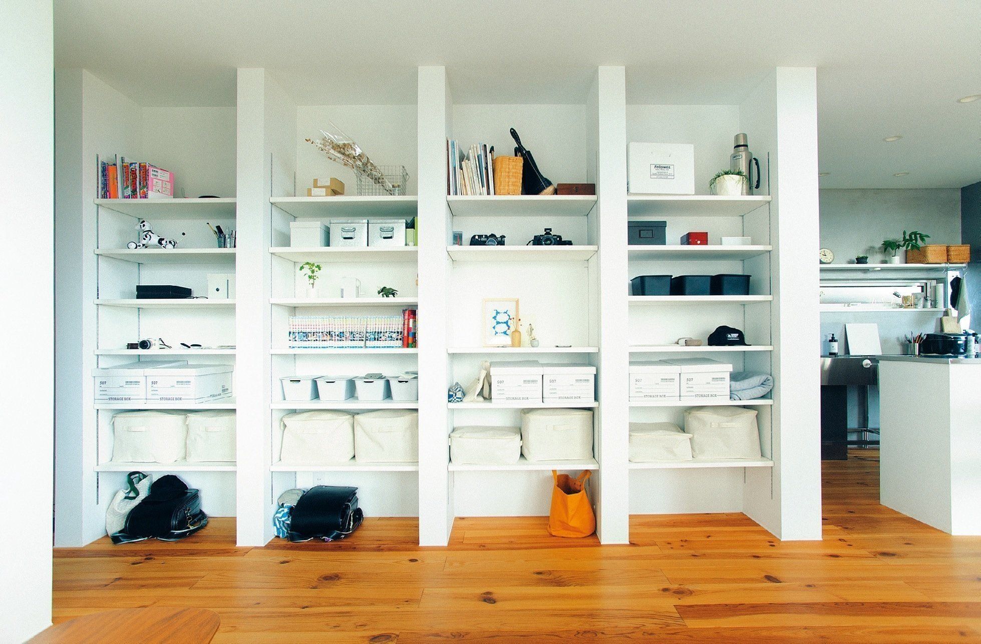 「扉がない棚なら、物を床に置くのと変わらない動作でサッと元に戻せます」。子どもたちも、自然と片づける習慣が身につきました。