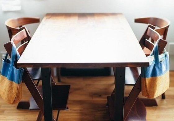 「子どもの本や文房具などは、バッグに入れて片づけを。ダイニングチェアにバッグごと掛ければ、いちいち部屋に運ぶ手間もありません」。(マキさん 18年11月号)