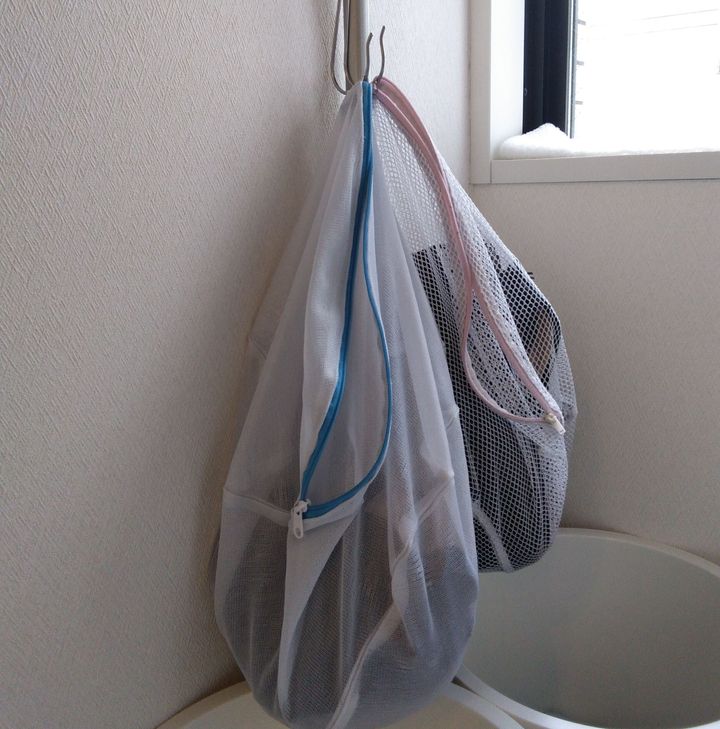 バスブーツの置き場に困っていたところ、ちょうどいいケースを見つけました。裏面はマグネットが3つついているので、洗濯機の横にセットしても簡単にずり落ちることはありません。