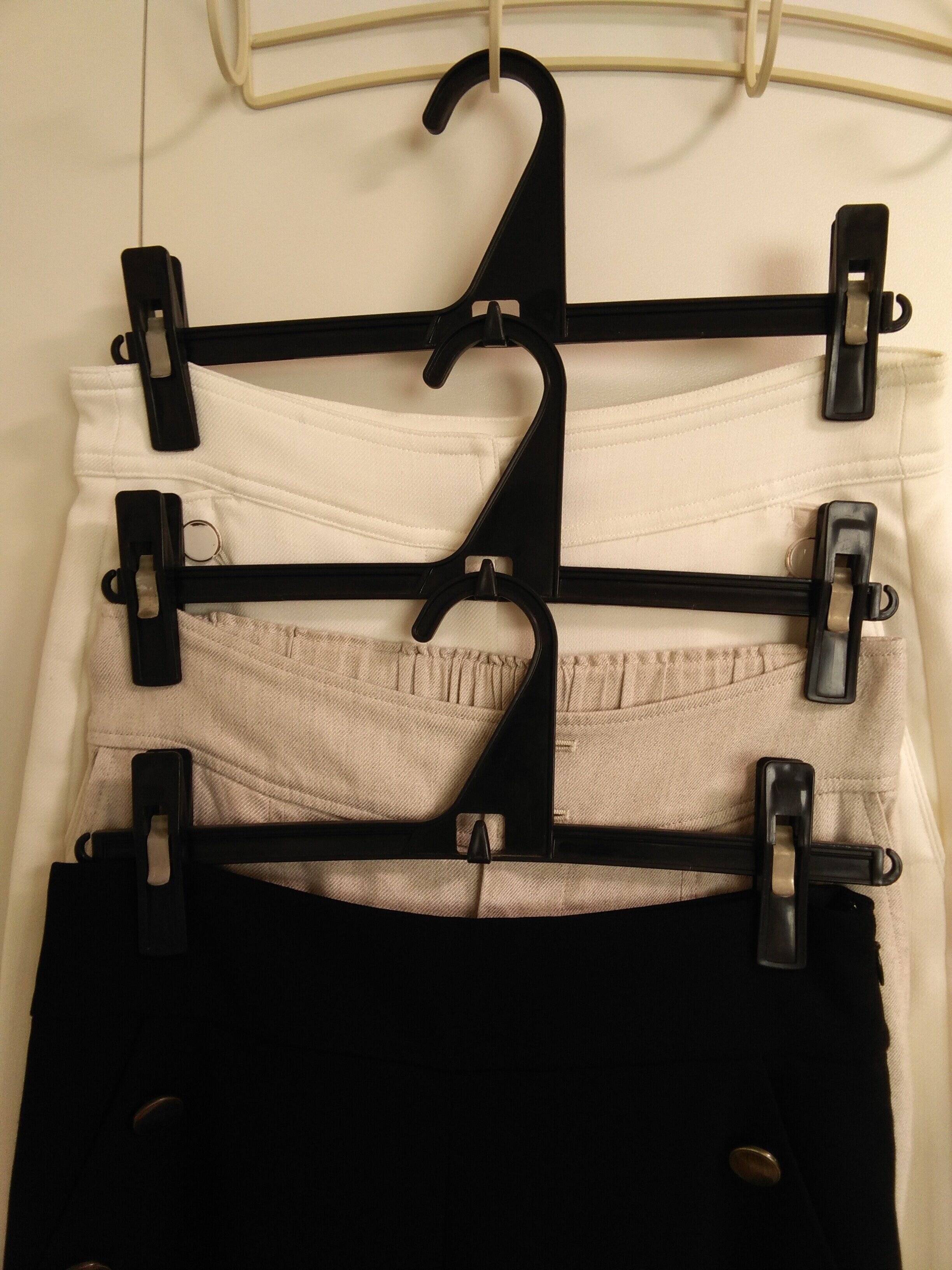 できれば薄手で、前後がフラットになっている、しっかりしたタイプのハンガーをそろえましょう。ただし、針金ハンガーは薄手ではありますが、柔らかいため形が歪みやすく、その歪みによってスペースを取ってしまうこともあります。服をしっかりかけるには頼りないことが多いです。