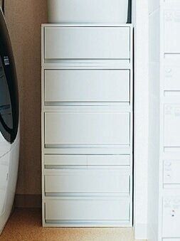 なるべく乾燥機にかけられる服を選んでいるあいこさん。洗面所に収納場所をつくり、乾燥を終えたらその場でたたんで収納する流れにしています。