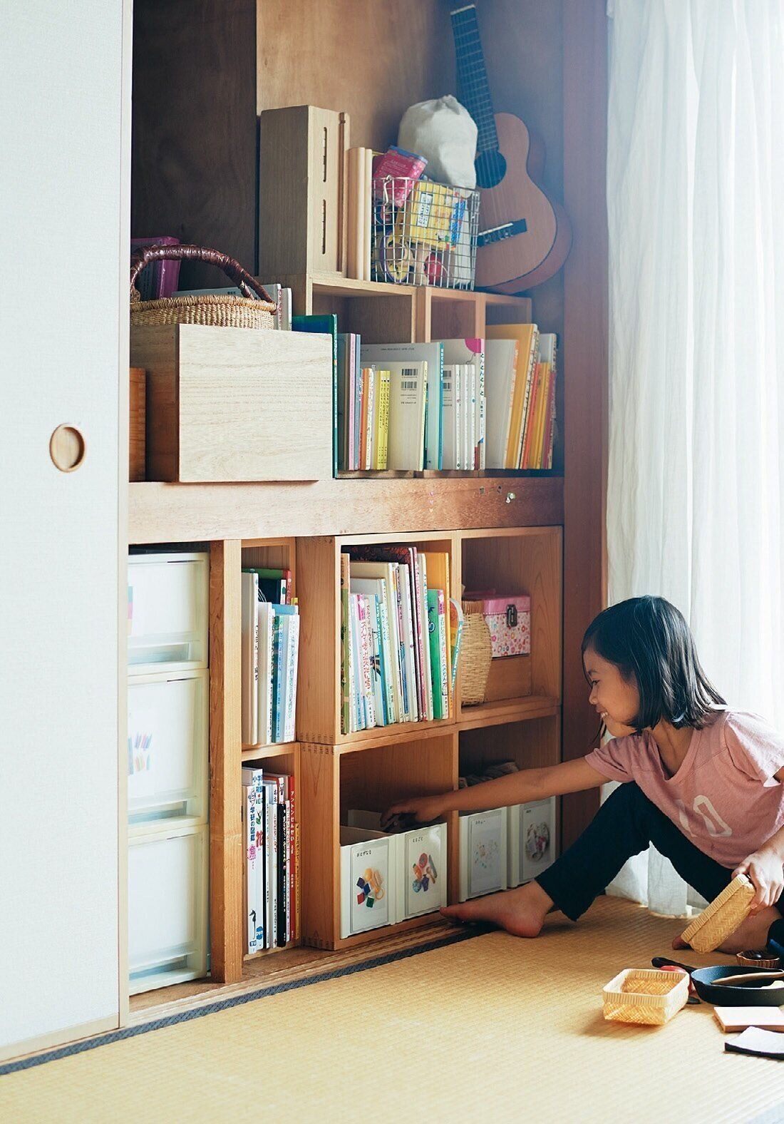 押し入れは、ふすまをはずせば子どもがおもちゃを片づける