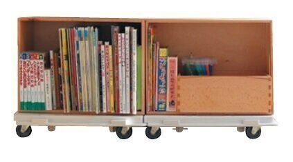 絵本は収納棚ごと台車の上へ。そのままゴトゴト寝室に運べる