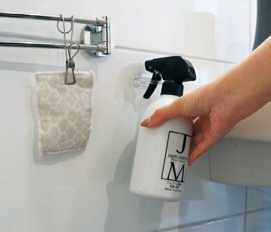 水まわりの洗剤は人目につかない位置に引っ掛けて、すぐ使える場所をキープ