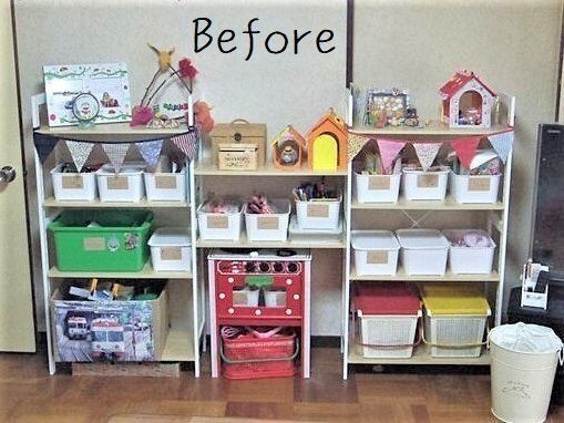 一時品切れになるほど人気だった、ふたつきボックス。私も買いましたよ!整理上手な人を見習ってラベルも貼りましたよ。この写真は、設置直後のものになります。これさえあれば片づくと信じていたんです。