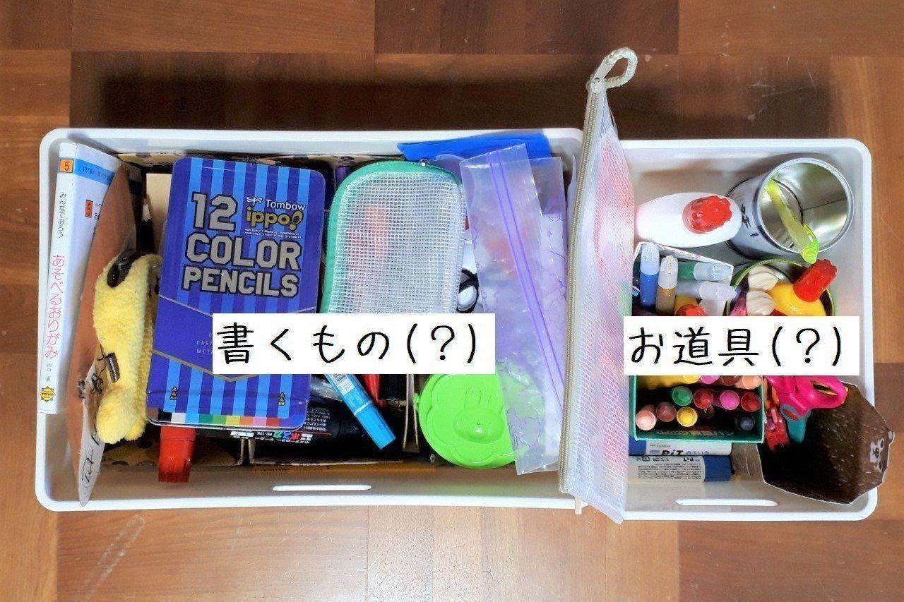 そして、「書くもの」ではなく「えんぴつ」「マジック」「くれよん」と細分化。ただ、「鉛筆と消しゴム」「ハサミとノリ」など、いっしょに使うものはワンセットにしました。