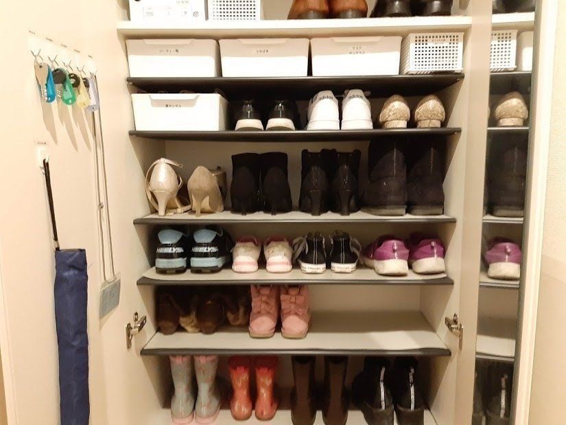 玄関の近く、もしくは下駄箱の扉の内側にスペースがありますよ!棚板と扉の間には、たいてい10cmくらいの余裕があります。そこを利用しない手はありません。
