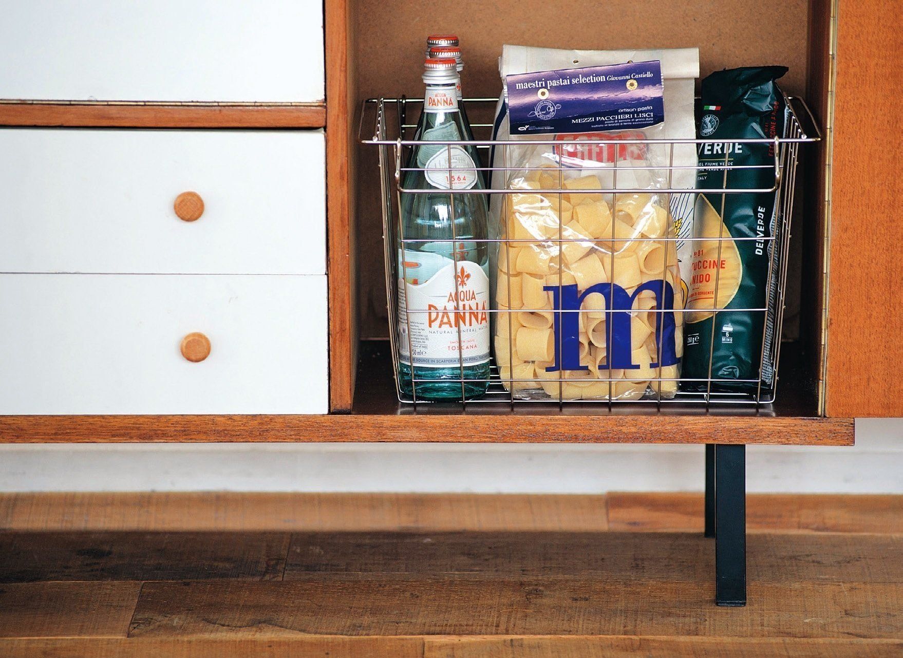 中身を把握しておきたい消耗品などの収納に最適。「一般的なカラーボックスに入るサイズが便利。このワイヤーかごだけを積み重ねて、気軽に収納スペースを増やすことも」(インテリア班)。