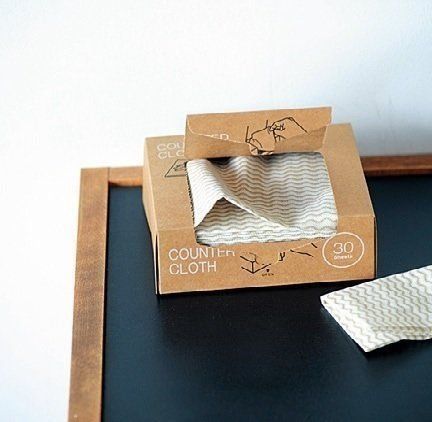キッチンにそのまま置ける落ち着いたパッケージ。台拭きならば10回くらいは洗って使うが繰り返せちゃう、丈夫な厚み。よれよれになったら最後は雑巾として使えます。