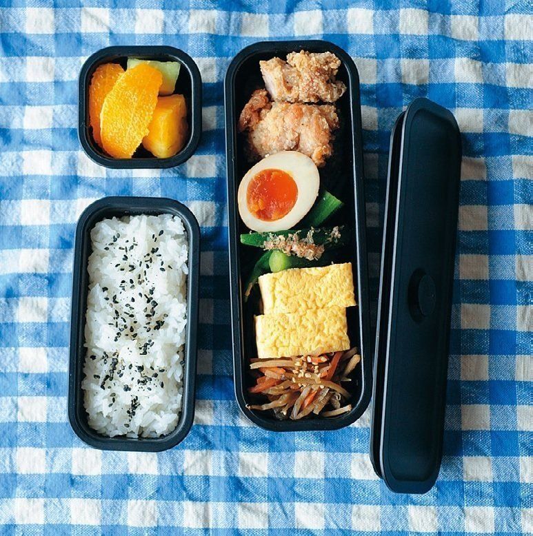(上から)「ポリプロピレン保存容器になるバルブ付弁当箱・黒スクエア/約70ml」¥264(約W6.8×D6.8×H5.1cm)、「同ロング/約175ml」¥355(約W13.6×D6.8×H5.1cm)、「同ロング/約320ml」¥446(約W21×D7.5×H5.5cm)¥264~