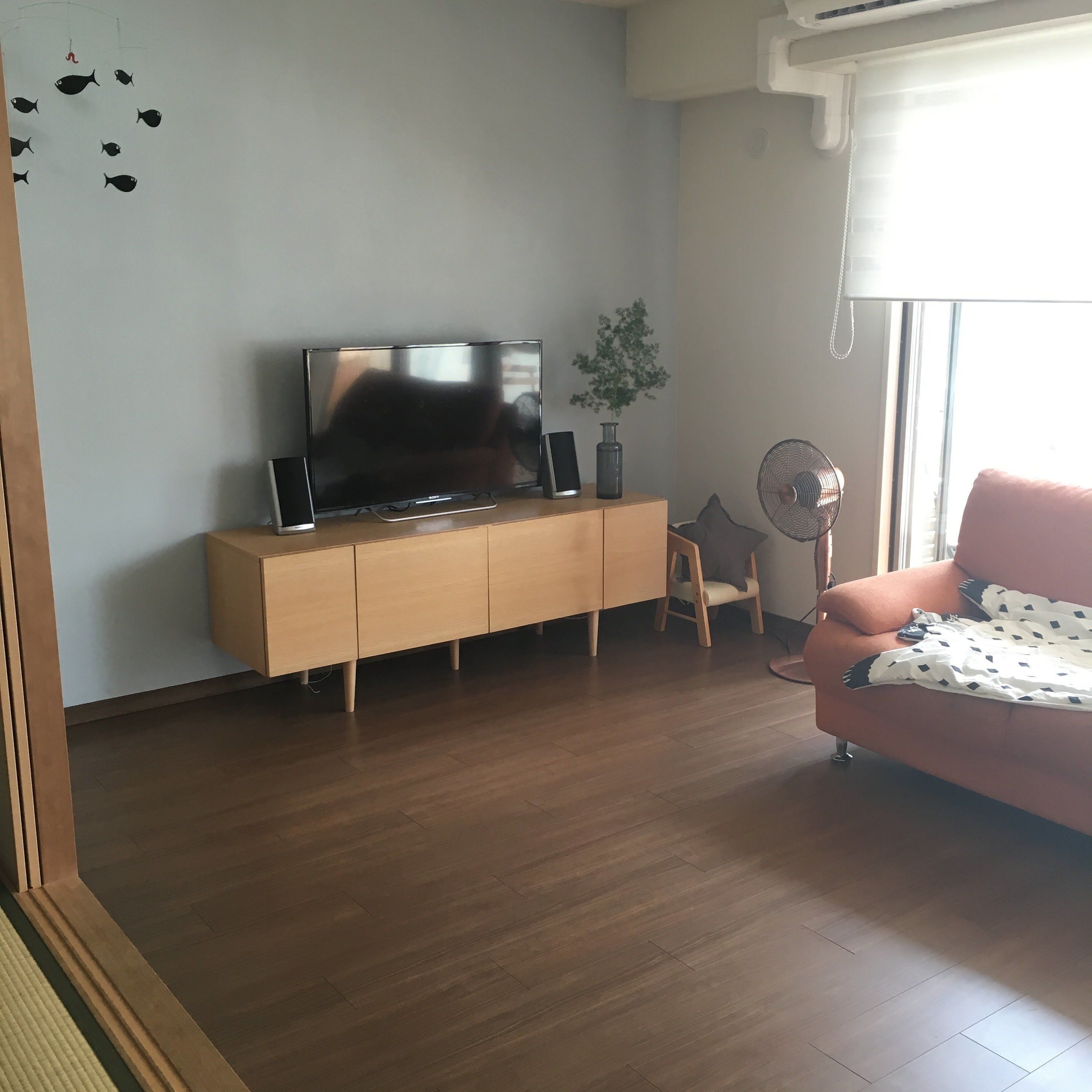模様替えが趣味なのでテレビの固定にも悩み、その間も子供が押してグラついたり、地震がきたときにヒヤッとする出来事が起こったので、思い切って持たない生活を始めてみました。