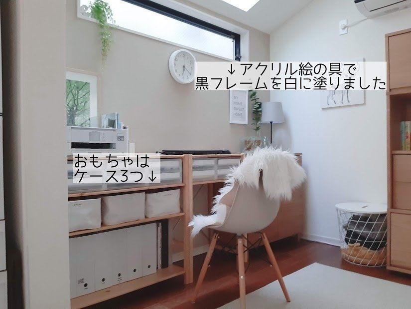 また、今まで黒かったポスターフレームを家にあったアクリル絵の具で塗り替えて白にしました(夏休みの自由研究の工作で使った残りで塗ったので0円!)。これも気分転換!