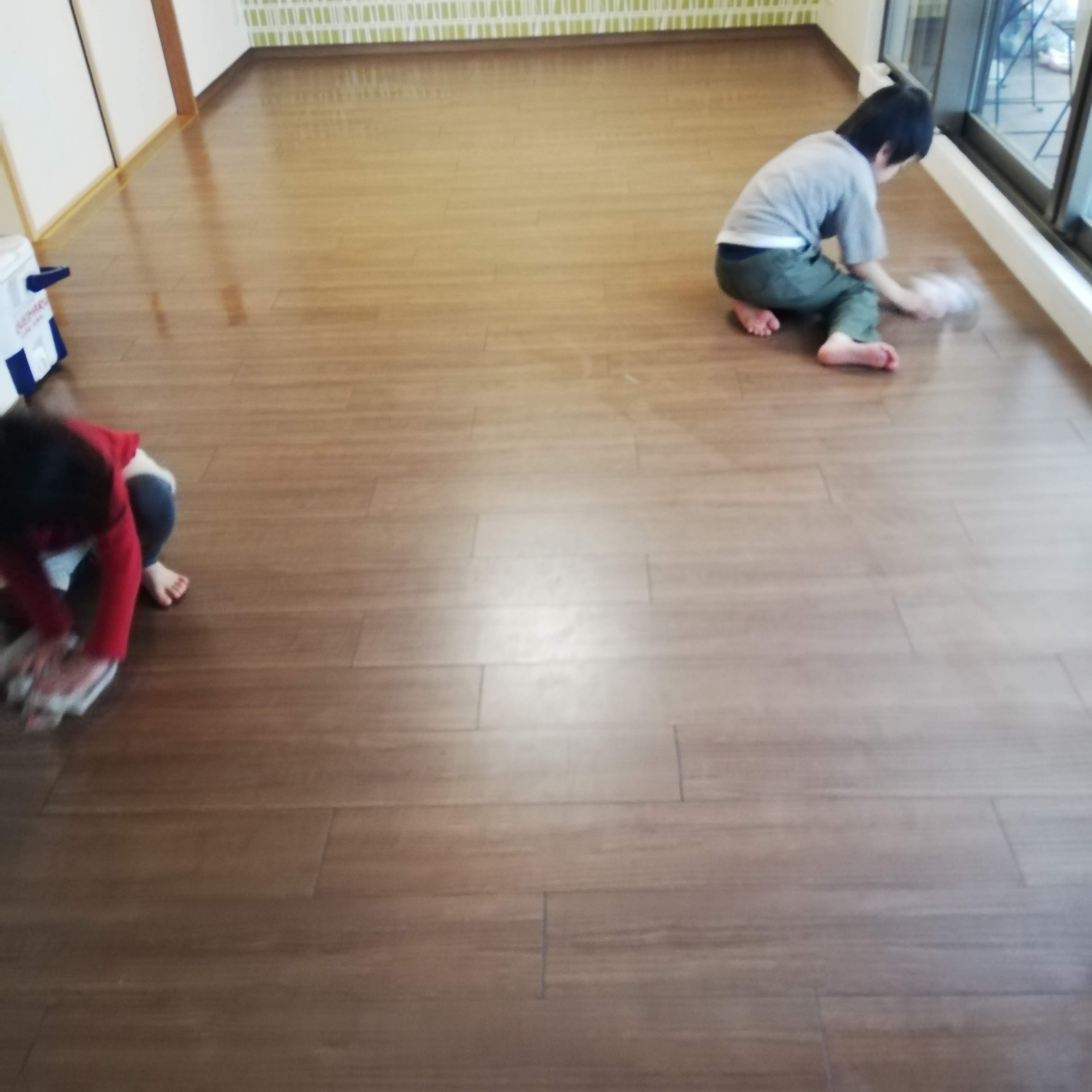 リビングは遊具だけととてもシンプルなので、それらをすべて移動すれば障害物がなく雑巾がけも楽しくなります。大人ももちろん参加です。すべての部屋を雑巾がけすれば、ヘトヘトです。