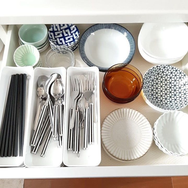 食材は、湿度と温度の影響を受けないシンクとコンロの間のエリアか、食器棚の引き出しなどを利用して収納しましょう。