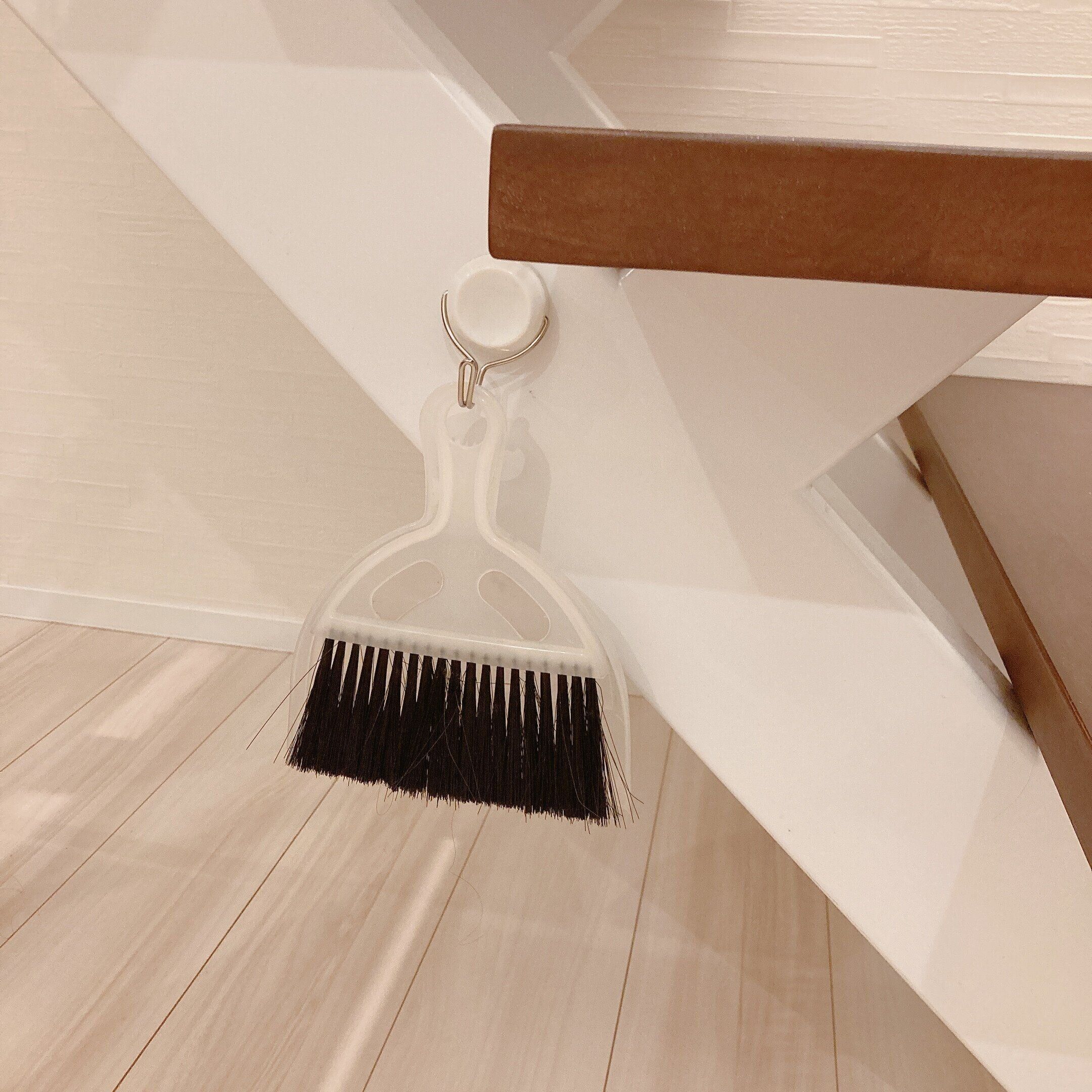 子どもがいるとリビングにお菓子の食べかすや消しゴムのカスなど散らかることも。そんなときにはミニほうきとちりとりをよく見えるところにスタンバイ。