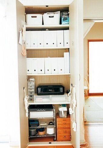 スマホの契約書、家電の取扱説明書、車関係の書類など家族で見る紙類はファイルボックスに入れてこの棚に。リビングで使ったら、即しまえます。「『あの書類どこ?』から解放されました」。