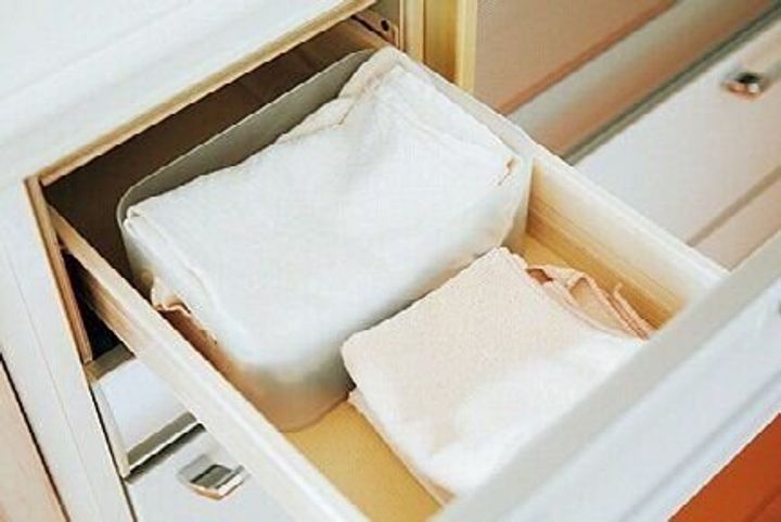 毎日使うふきんや箸は食卓にいちばん近い引き出しの中。「私がキッチンに立っていても、ここなら私の後ろを通らなくても取れます。やりやすいと配膳の手伝いもすすんでしてくれるようになりますね」。